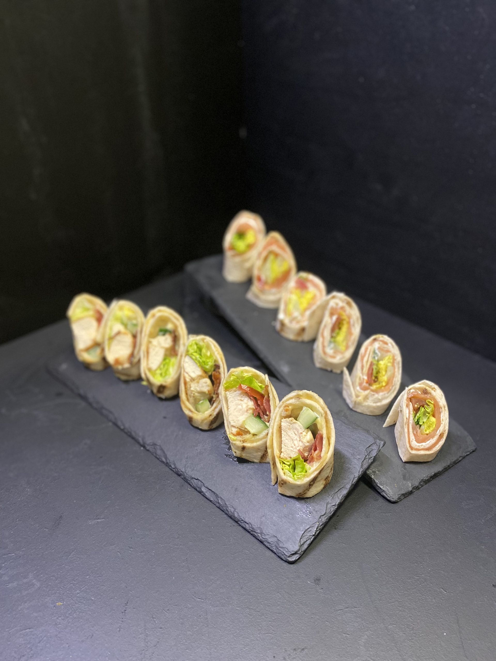 Wraps poulet bacon de dinde & wraps saumon fromage frais herbes fraiches