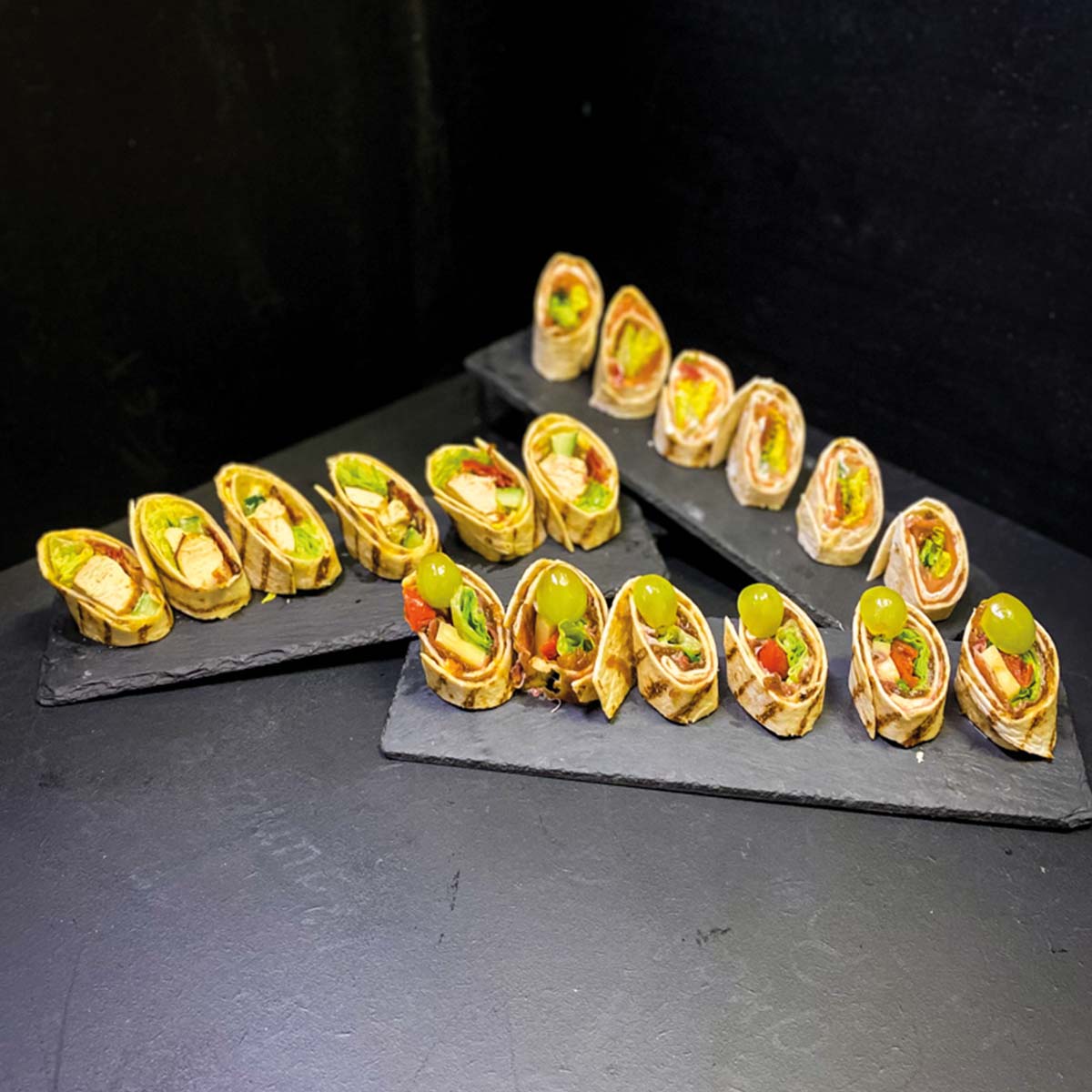 Wrap Saumon (saumon, fromage frais, concombre, salade et herbes fraîches) Wrap Poulet (Poulet, mayonnaise, salade, tomates, parmesan) Wrap Jambon comté (Jambon, mayonnaise, compté, salade)
